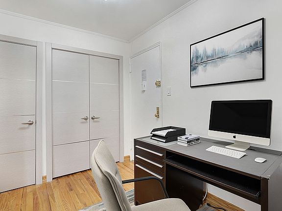 Step into this fully renovated and move-in-ready apartment, The apartment boasts high-quality finishes throughout, hardwood floors and abundance of closets Upon entering, you’ll be greeted by a large and well-lit foyer, that can be little office nook, allowing you to seamlessly blend work and home life, next to it spacious and inviting living room.
