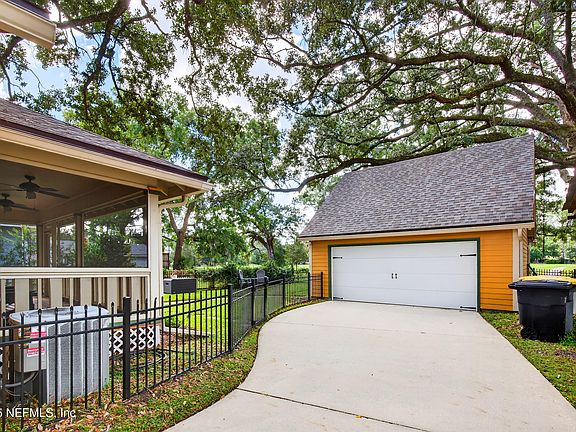 Step outside to enjoy the front and back porches, both with ceiling fans, perfect for relaxing on warm afternoons. The screened-in back porch offers privacy and a serene space to enjoy your backyard. The driveway is NOT shared. The property is fully fenced with wrought iron fencing and opens directly into Fishweir Park, or head to Boone Park, just minutes away. Additional features include a driveway to avoid street parking, a detached two-car garage, and a versatile ADU above the garage that can serve as a home office, short-term rental, kids' playroom, or studio. Located on a quiet, low-traffic street, this home is within walking or biking distance to Avondale's restaurants, shops, and parks, and just minutes from Fishweir Elementary, NAS Jacksonville, and downtown. Ask us about seller incentives.