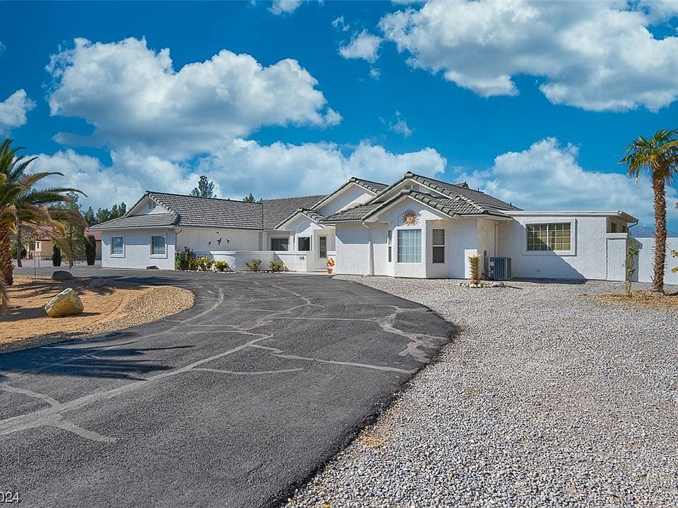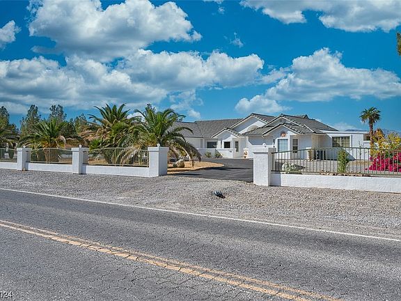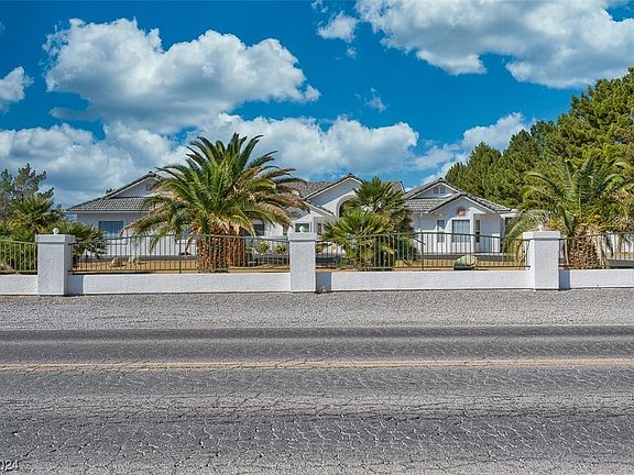 You can be away from it ALL and still have all the amenities of being in the middle of everything! This elegant, custom single story, home is situated in the middle of Pahrump, Nevada. Perfectly placed on the more than 1 acre lot, you have a circular drive with room for RV parking, a paved drive through double gate to a LARGE shed and STILL have an enormous backyard! There is an enclosed porch before you walk into a single story entertainers paradise. A massive great room with a separate dining area and sunken living room is bordered by a well appointed eat-in kitchen with tons of natural light! Two Nevada rooms to create even more space for a game room play room for the kiddos or a place to relax with a hot or cold tea and enjoy the desert sunrises and sunsets. The HUGE primary suite is your canvas to create a desert retreat and spa. The fully fenced backyard is a blank slate for you to create your wildest outdoor dreams! Tour this home today!