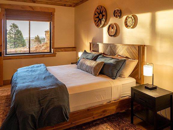 Beautiful nightly rental cabin built for large families or group gatherings. Located in the Zion Mountain Estates in the East Zion Park area. Just up from Carmel Junction on Hwy. 89. 40 minutes to Kanab, 15 minutes to the East Gate of Zion Park. Good nightly rental history. Open floor plan with 4 large bedrooms and a 5th bedroom with built in bunkbeds. Laundry area and large bathrooms. Fantastic mountain and Zion Park views. Come see the nearby Buffalo Herd and Eat at the nearby cafe. Great Vacation spot. You can keep the cabin as your own families private getaway. Just off the Main Hwy to Zion Park. Easy access.
