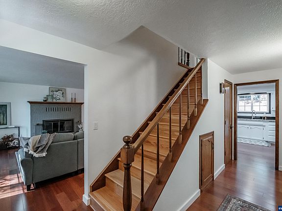 Bridlewood Estates on almost 1/2 acre with 4 beds + Den/Office/Bonus room! Entertainer's dream, nestled in the trees with no homes behind, enjoy mountain & city views. The open kitchen boasts SS appls & granite counters, while 2 (gas & wood) fireplaces invite relaxation. Featuring a main floor bonus room with deck, spiral staircase, new carpet, engineered hardwood floors, updated vinyl windows, 2 decks & fully fenced yard! With access to 22 acres of walking trails it's the perfect blend of nature & comfort.