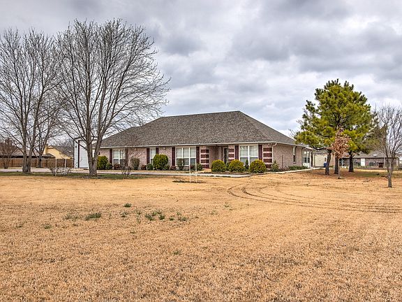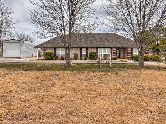 Great South Claremore location! Lovely brick, single level, one owner home. Featuring large kitchen with island and granite, 2 dining areas, 3 living areas, split bedroom plan and master suite with huge closet. 1.6 acre property is fenced with a gated entry, RV garage and 4 out buildings. Nearly new roof, heat and air. Home Warranty offered.