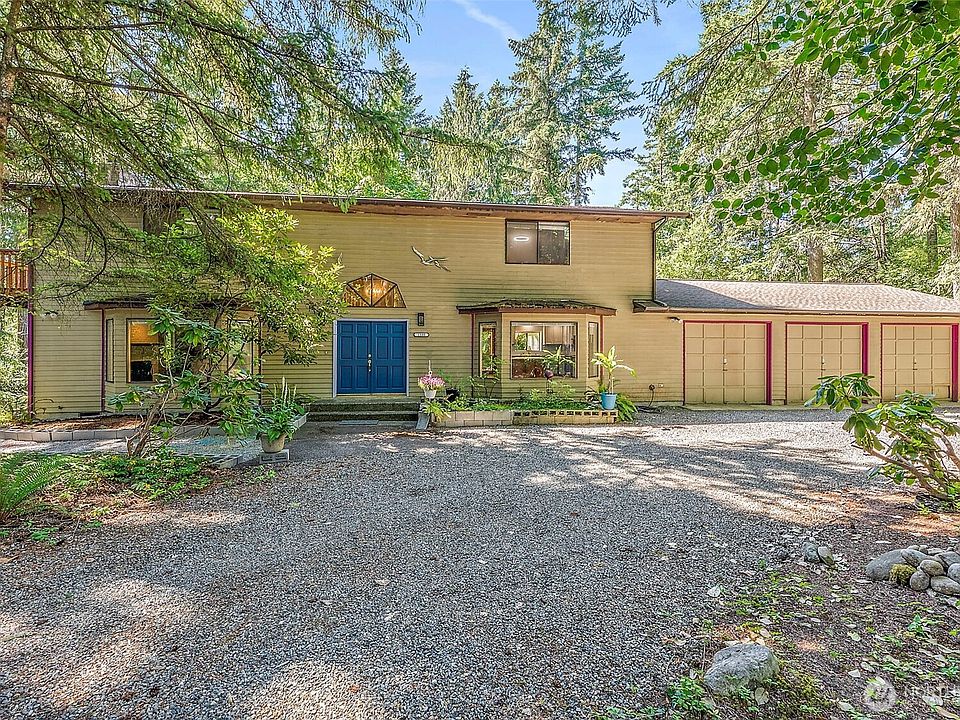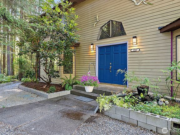 Set on a beautifully wooded lot, this expansive 3-bedroom home includes a large bonus room with ensuite bath, perfect for multi-generational living or a deluxe home office. With true Northwest landscaping, an established blueberry patch, and tranquil surroundings, walking trails, this home is a private retreat with space to thrive. Each bedroom has its own door to the upper wrap-around deck as well! Brand new furnace and electric fireplace to keep you cozy in our northwest fall evenings. This is your chance to surround yourself with nature yet be close to everything! Come take a look!