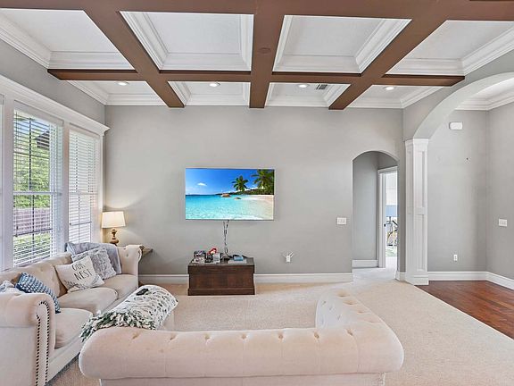 Welcome to 1580 SW Little Road, Lake City, FL 32024, where this charming home graces a spacious .9-acre lot adorned with a distinguished hardy board and stone exterior. Inside, discover 3 bedrooms and 2 bathrooms, featuring custom kitchen cabinetry with appliances included, and a convenient coffee bar. The family room boasts grand coffered ceilings, creating an inviting ambiance. Relax in the expansive master suite, complete with a luxurious whirlpool tub and a walk-in closet. Upstairs, a versatile bonus room awaits. Outside, a concrete driveway leads to a 2-car garage, while the large fenced backyard offers a tranquil escape with a fire pit for outdoor gatherings. Additionally, a shed is included for added storage convenience. This home combines elegance and functionality for buyers.