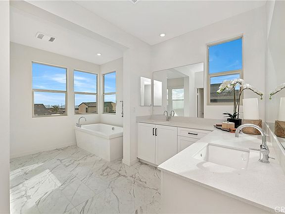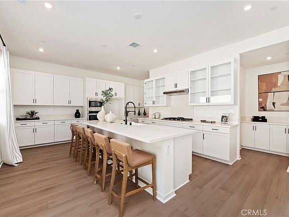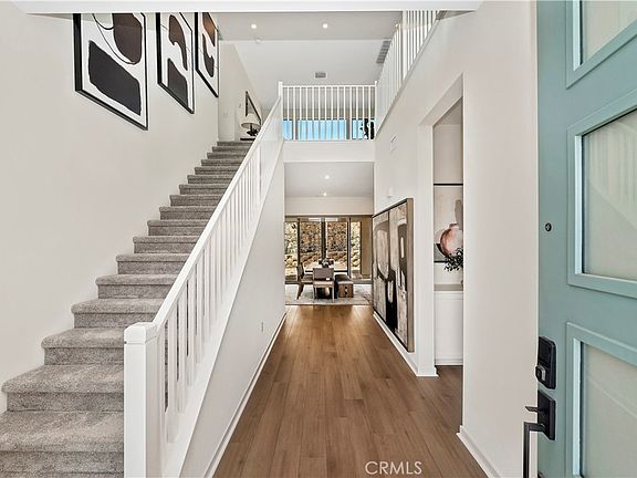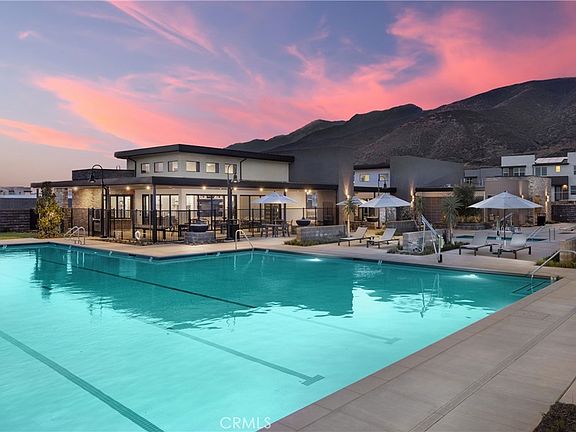 Step beyond the brick-framed porch and into a home that immediately feels both grand and welcoming. This 3,612 SqFt “Modern Spanish” residence rises gracefully above the street, its light aqua front door hinting at the calm, curated elegance within. Inside, sky-high ceilings and warm laminate wood flooring create a sense of openness that carries throughout the main living spaces, all designed to bring in natural light and modern comfort. The kitchen is a statement with Samsung stainless steel appliances, a white porcelain farmhouse sink with a matte black Moen faucet, soft-close white shaker cabinetry, quartz counters and sleek matte black hardware. Just beyond, stairs with an Alabaster-painted handrail lead up to the home’s private spaces, but not before revealing one of the property’s most exceptional features: the fully independent in-law suite. With its own kitchenette, dual-sink bathroom, and walk-in closet, this space is tailor-made for multigenerational living or long-term guests. Upstairs, a spacious loft offers room for movie nights, homework sessions, or a second lounge. The conveniently located laundry room -- finished with elegant tile and a utility sink -- adds true everyday practicality. The primary suite fills with natural light and is anchored by a spa-like bath featuring a large Roman soaking tub and an oversized walk-in shower. The backyard is a blank canvas, already set with the privacy of no rear neighbors and ready for your imagination -- jacuzzi, garden, outdoor kitchen... Additional highlights include 13 solar panels, smart-home automation, Moen fixtures in the bathrooms, and a generous three-car tandem garage offering room for vehicles or storage. The exclusive community of Narra Hills is truly resort-style living reimagined -- a gated, master-planned community set on over 100 acres and backing up to the San Bernardino National Forest, offering sweeping valley and mountain views. At the heart of the community is a resort-caliber rec center: imagine lounging by a sparkling pool, relaxing in cabanas, or gathering in a great room with a catering kitchen. You can break a sweat in the fitness studio or on the pickleball courts, roast s’mores around a fire-pit lounge, or host a barbecue in the shaded pavilions. There are playgrounds for the kids and even dog parks for your furry family members! Living here feels like an elevated retreat, but with the convenience of being just minutes from shopping, dining, and outdoor recreation.