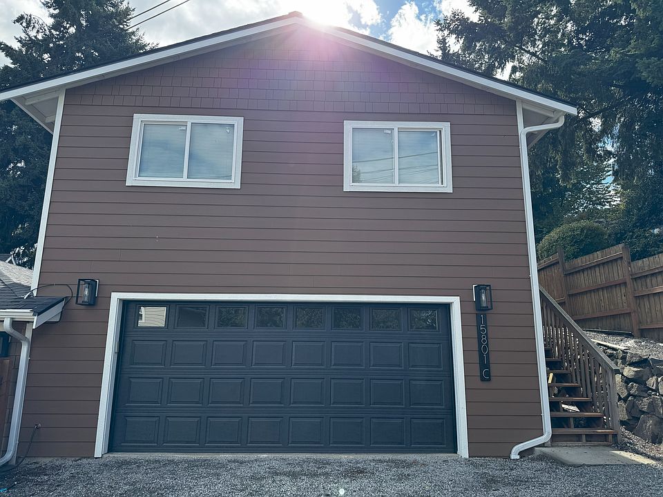 Brand new, above garage unit in a quiet triplex walking distance to Olde Burien. Close to bus lines, transit center, shops, restaurants, PCC, & Trader Joe's. Unit is equipped with new efficient gas appliances, HVAC heat pumps, deck, and small yard with fire pit. Small pets are ok with deposit, no smoking, garage is not included in rental unit, ample parking available.