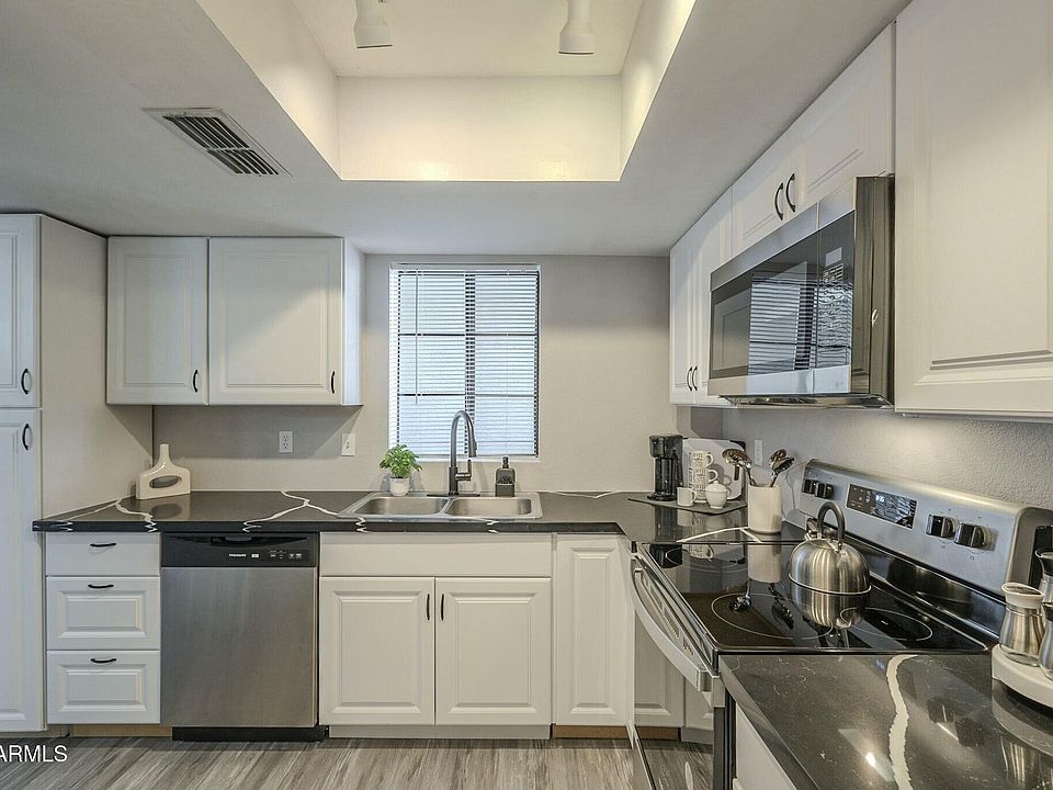 SELLER IS WILLING TO ASSIST WILL CLOSING COSTS OR RATE BUY DOWNS WITH A QUALIFYING OFFER!! Come and see this freshly remodeled 2 bed 1.5 townhome in Phoenix. The unit is MOVE IN READY!! Beautiful luxury vinyl plank flooring in the main living area and plush carpeting on the stairs and second story. Kitchen features white cabinets with upgraded quartz tops and stainless appliances that convey. 1/2 bath and laundry room are both downstairs while the 2 bedrooms and full bath are upstairs. Brand New A/C unit. Community pool is just steps away from the unit. Don't miss out on this one!