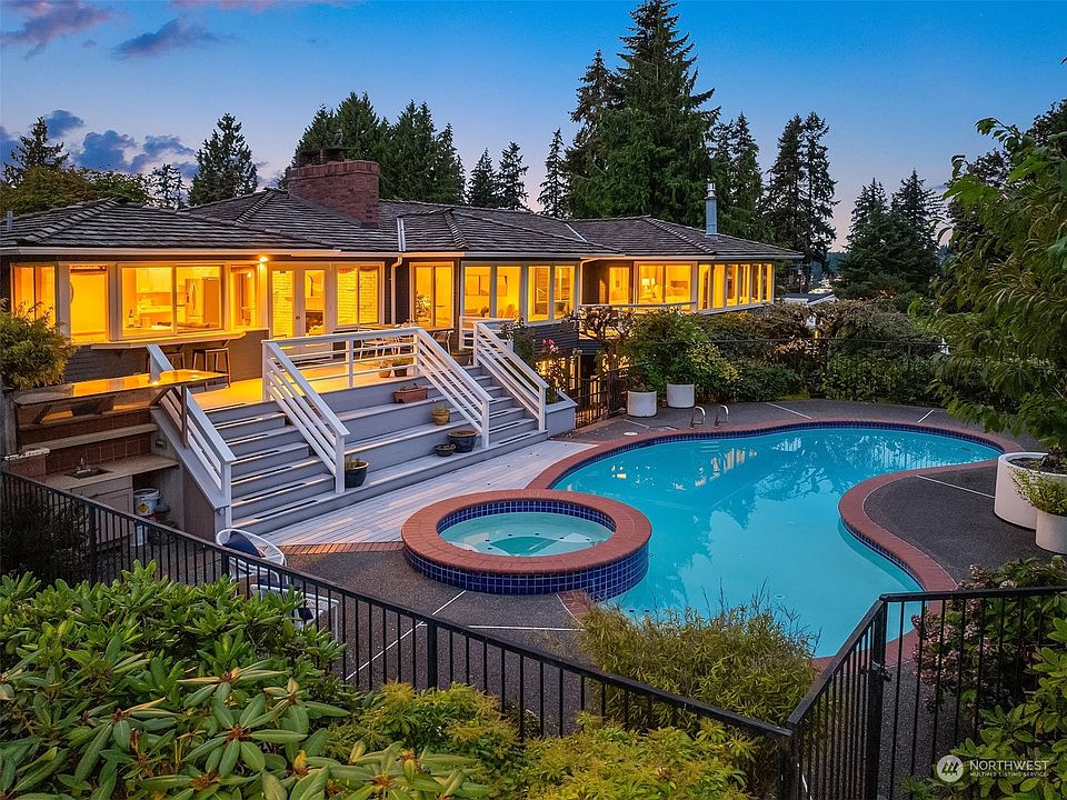 Step away from the hustle and embrace the serenity of this light-filled, spacious retreat! Host unforgettable summer gatherings by the sparkling pool, or get cozy in the expansive basement. The midcentury modern architecture evokes charm and style, with wood paneled, vaulted ceilings and thoughtful, grand living spaces. The luxurious primary suite features dual vanities, sauna, and gas fireplace. Amazing location in the Arrowhead neighborhood on the 15th hole of Inglewood Golf Course, near scenic St. Edwards State Park. Systems upgrades throughout, including new cedar shake roof, heat pumps w/ductless units, new windows, remodeled kitchen, and more. This gem is ready to welcome you home!