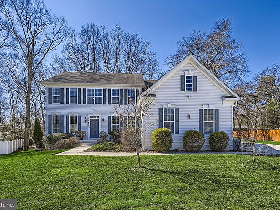 Beautiful home on expansive half-acre wooded lot at the end of a quiet cul-de-sac. Lots of outdoor space with a ceramic patio, well-maintained grass, and trees. Spacious 3-car, side-entry garage with large concrete driveway. Open floorplan with large windows and lots of light. Wood floors and nine-foot ceilings. Two-story foyer and two-story living room. Private office with French-doors and excellent views. Sun-drenched sunroom/morning room with vaulted ceilings. Kitchen features large island, granite countertops, and stainless steel appliances. Luxurious primary suite with extensive closets and spa-like master bath with giant soaking tub. Living and dining room with two-tone paint, chair rails, and crown molding. Lots of modern upgrades: Ecobee thermostats, Ring floodlight cameras, motion-activated interior lights, etc. Highly-functional, unfinished basement with 9' ceilings, pre-plumbed for a bathroom, with sliding-door access to yard and window for a guest suite. Property is privacy-fenced on three sides. Quick access to I-95, Baltimore and Washington. This home is beautifully finished, gently lived-in, and ready for you to move-in and make your own!