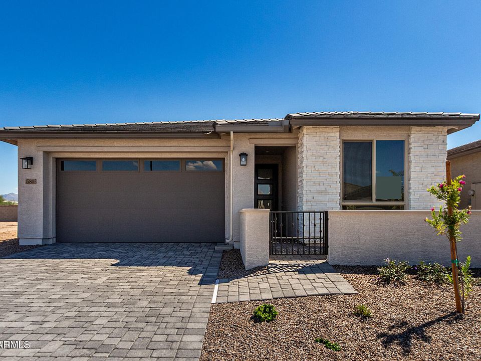 Explore this thoughtfully designed Sunstone floorplan featuring 4 bedrooms and 2 bathrooms. This home includes a study and a functional open layout. The kitchen features a gas stove, quartz countertops, stainless steel appliances, 42'' upper cabinets, a tile backsplash, and a walk-in pantry. The spacious primary suite includes dual walk-in closets, dual sinks, and a separate water closet in the bathroom. Additional features include stone tile flooring, a large covered back patio, and ceiling fan prewiring in select rooms. The Ballpark at Avion community offers amazing amenities for just $107/month, including: Resort-style pool, pickleball courts, walking trails, parks and grilling ramadas. The neighborhood is located within walking distance to 2 major league baseball spring training facilities. Residents also enjoy easy access to more than 50 restaurants and lots of shopping within 3 miles.