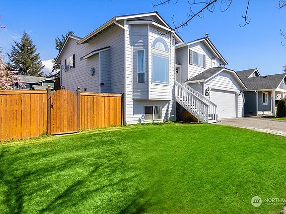 California style mid-entry multi-level, home great value. Total of 4 bedrooms, 2.75 baths, 2 car garage, great for multi-generational living. Inviting entry on main level, large living room, vaulted ceiling, picture window, fireplace. Dining overlooks living room, adjacent kitchen, access to deck & pantry. Spacious primary bedroom, 4-piece bathroom en-suite, walk-in closet. The other 2 bedrooms share one bath. The walkout area features rec room, bedroom, utility with 3/4 bath. The lower offers bedroom, great for guests, home office, home gym, music or crafts. Nestled on large fenced corner lot, with RV parking, or trailer, additional parking in front by shed. Monroe Schools, convenient location, near all amenities & easy access to freeways.