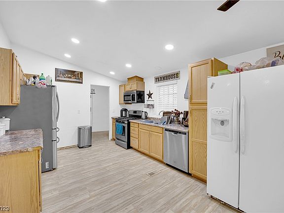 4-bedroom HORSE PROPERTY IN BEAUTIFUL SANDY VALLEY. This home sits on a 2-acre lot. Most of the yard is towards the back so you can design the yard as needed for your horses, sheeps etc... There is also a lighted arena, to ride and train your horses at any time. New electric wiring put in the home. Additionally, there are 3 spacious sheds and a coop ready for your chickens and/or roosters. The kitchen is a highlight, featuring laminate countertops. Don't miss out on this amazing property. THERES A LOT OF POTENTIAL. Whether you're an avid equestrian or simply seeking a peaceful retreat, this property has it all.