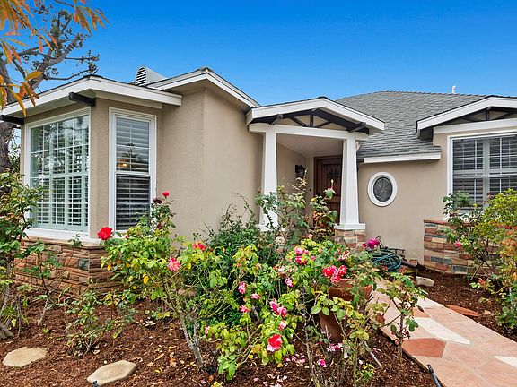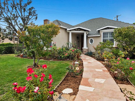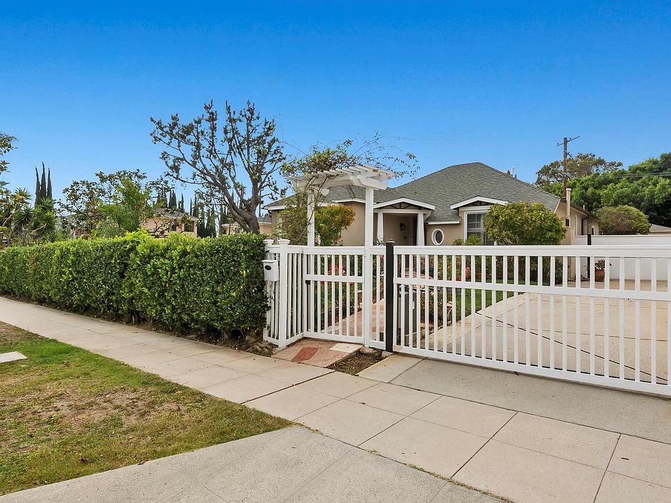 Beautifully updated 3 bed/2 bath Traditional on prime (7,837sf) large corner lot. Front landscaped with a privacy hedge, gated driveway and a white picket gate & vine-covered arbor entrance leading to the flagstone walkway and covered porch. Formal entry with closet opens to stunning sun-filled front living room with bay window and brick-front gas fireplace. Ideal for entertaining, with spacious formal dining room finished with wainscoting and detailed crown molding, opening to back step-down family room with skylight and sliding door to tiled patio with veranda and backyard. Updated kitchen off family room, filled with natural light, granite countertops, sink with window overlooking greenery, gas range top and built-in microwave. Complete with breakfast room and laundry area opening to backyard with covered patio, grassy area and 13 mature fruit trees throughout the property. Primary bedroom perfectly situated overlooking backyard and has a large closet. 2nd bedroom front facing, and both share a totally remodeled full bath with marble finishes, separate spa tub and shower and vanity area. The 3rd bedroom on opposite side of the home with an ensuite remodeled 3/4 bath with stone & tile finishes. Additional features include all dual-pane windows, central ac/heat, hardwood flooring & plantation shutters. Ideal location, close to UCLA and Westwood Village, Westwood Blvd., shops & retail including Bristol Farm and Sprouts, and Westfield Century City Mall. Fairburn Elementary School. Move-in ready!