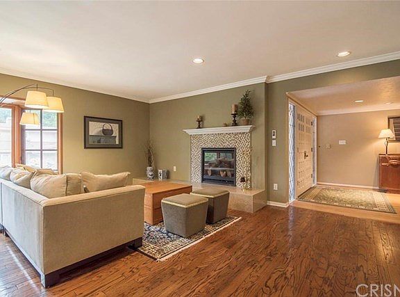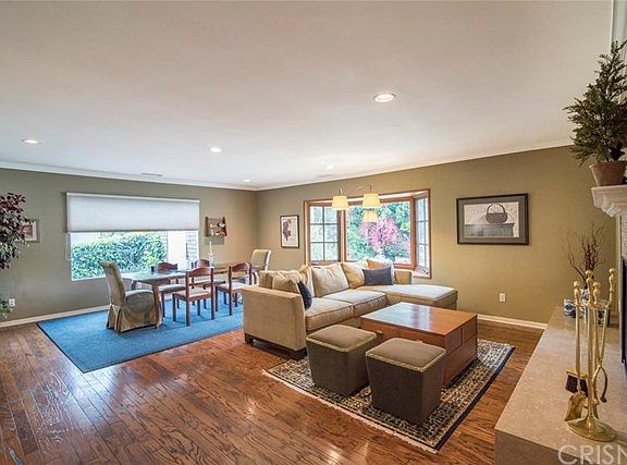 This elegant traditional perched on a hill in the heart of the highly desirable Royal Woods area of Sherman Oaks has 4 bedrooms + 3 baths. The double door opens to a formal entry that is ideal for greeting guests into this warm home. The home features an expansive living room with dining area and has hardwood floors, recessed lighting and fireplace. A large spacious family room w/ wall to wall built in bookcase and skylight overlooking the gorgeous backyard. A large eat in kitchen has breakfast area and a second dining area and also features: granite counters, double wall oven, 6 burner gas stove, center island and recessed lighting. Master bedroom suite has a separate office, large walk in closet, and bath with dual vanities, glass shower, jet tub and direct access to backyard. Upstairs are 3 bedrooms with bath and a separate playroom/office with lots of light and storage. Great indoor/outdoor flow makes this an ideal home for entertaining. The backyard boasts a covered patio, pool, spa, waterfall, built in bbq and is lushly landscaped. The easy access to the 405 and 101 freeways makes it a great and easy commute to the Westside and minutes to Ventura Blvd.