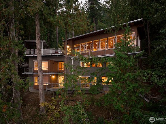 Tucked along the pristine shores of Lake Wenatchee, this modern masterpiece delivers elegance, seclusion, and a lifestyle of adventure in the Cascades. An expansive open-concept living area showcases sleek finishes, a striking fireplace, and a wall of windows framing breathtaking lakefront views. The gourmet kitchen flows seamlessly to an incredible outdoor deck for entertaining. Downstairs offers a luxurious primary suite, two guest bedrooms, a game area, and a custom climbing wall. With 200 feet of pristine frontage, privacy abounds. Excellent winter access includes a two-car garage and a heated parking pad. From endless scenic trails, Stevens Pass slopes, and Bavarian Leavenworth, this retreat brings adventure and beauty to every season.