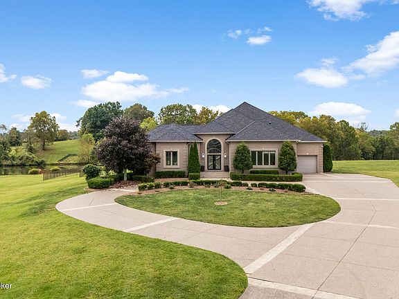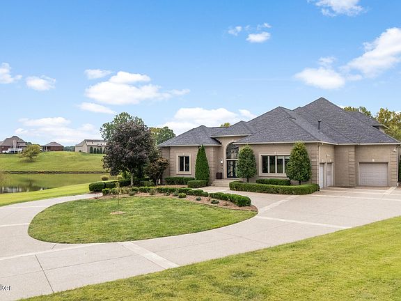 Welcome to this unique opportunity to own 6.2 acres in Jefferson County, tucked away in the quiet and charming Crystal Valley. This beautiful 4 bedroom, 4 ½ bathroom, 3 car garage brick home was thoughtfully designed with comfort, elegance, and functionality in mind. From the moment you arrive, you'll notice the attention to detail that makes this property stand out as a true one-of-a-kind. As you enter the property through the recently installed electric gate, you approach the front of the property and circle drive, the entrance door takes you immediately into the outdoor courtyard that overlooks a scenic lake with dock and solar lights, and rolling green acreage with wooded background. The courtyard has an inground salt water-converted pool that is heated and displays multi color lighting with various settings. The pool has a new chlorine generator, pool pump, and new valves for heater and filter. The pool house has a bedroom/entertainment space and a full bathroom. With over 5,900 finished square feet of living space, there is plenty of room for entertaining and hosting overnight guests. As you enter into the main house, the open living room fills the space with natural light and is adjacent to the formal dining room with Butler's pantry. The kitchen is a chef's dream, with a 5 burner new gas stove, new motion sensor kitchen faucet, lots of cabinet space and additional cabinets made specifically for spices. The kitchen is open to the family room with gas fireplace and double doors that open to the courtyard and pool. The primary bedroom has tray ceilings, double doors to the outside and offers 2 full walk-in closets. The primary ensuite has a large shower and spa jacuzzi tub that overlooks the lake. There is an office that has a window looking out to the pool and courtyard area. Upstairs are 2 bedrooms with a full bath. One of the bedrooms has a doorway to enter an outside balcony that also overlooks the pool.