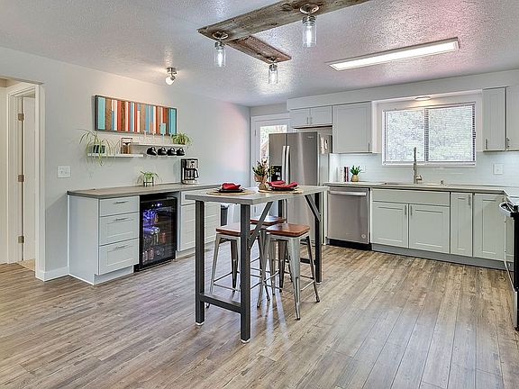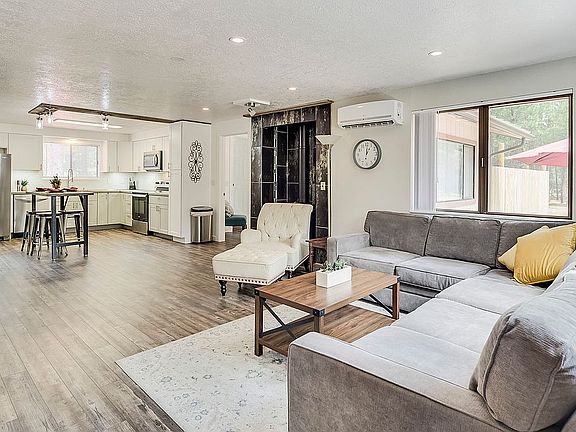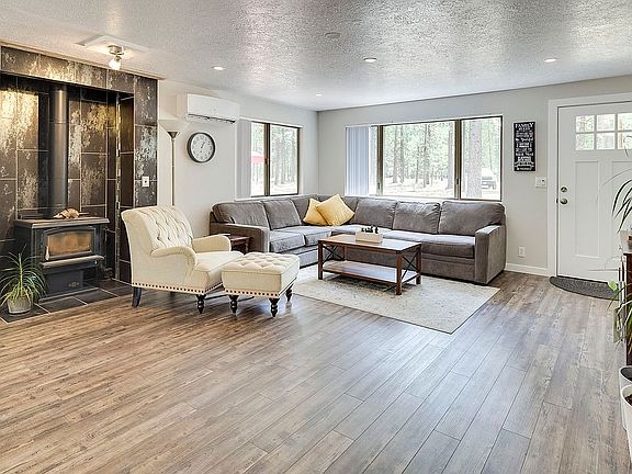Completely remodeled home with end of the road privacy, modern touches and a country feel. The open floor plan and large windows makes the home feel spacious and bright. Interior highlights include updated LED lighting, reclaimed barn wood ascents, tile around the wood burning stove and heated floors in the master bath. Plus, LVP flooring throughout the home and new carpet in the guest bedrooms. The kitchen features new cabinets, wine frig, SS appliances, and butcher block counter tops. Efficient mini split units provide heat/AC to the rooms as well as the detached garage. Outside, the home features and a hot tub, outdoor shower and a privacy fence. The roof and septic were replaced in 2020, and the exterior paint and low maintenance Trex decks were done last year. The home is set back from the road and neighbors, so it is quiet and peaceful. The adjacent lot is also for sale for additional space for a shop. Available fully furnished for an ideal investment property. Come take a look! Shown by appointment. Email curtloch@gmail.com to schedule a showing.
