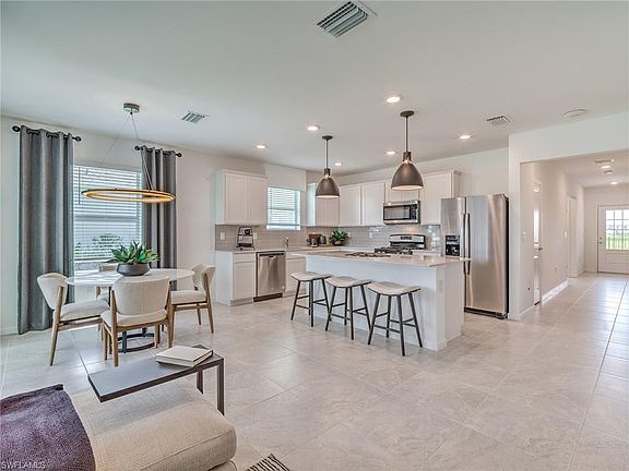 Welcome to the Hanover at Northridge! This beautifully designed home features 4 bedrooms and 2 bathrooms, making it perfect for families seeking space and comfort. The Hanover's open floor plan maximizes its square footage, with a spacious family room that seamlessly connects to the café area and modern kitchen. The kitchen is highlighted by a functional island, ideal for casual dining and meal preparation. The owner’s suite offers a generous retreat, while the three additional bedrooms provide ample space for growing families or guests. This home is equipped with premium features such as white cabinetry, quartz countertops, smart home technology, and hurricane-resistant glass for added security and convenience. Sliding glass doors lead to a screened-in, covered lanai, offering an inviting outdoor living space with room to add a pool after closing, if desired. Northridge is ideally situated near Founder's Square, Slater’s Goods & Provisions, The Hatchery business incubation center, an event lawn with a band shell, and a scenic boardwalk, ensuring both convenience and vibrant community life. With an in-house mortgage company making financing seamless and a 10-year limited warranty, the Hanover at Northridge is an exceptional place to call home. Photos are for illustration purposes only, options may vary.