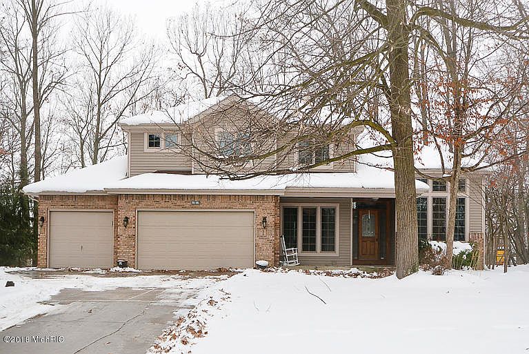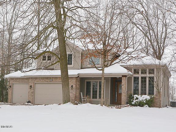 This Fantastic home is nestled on the Cul-De-Sac end. Located on a nearly half acre treed lot with an amazing view of the Flowerfield Creek. Offering 4bd, 2 1/2 baths, Living Room & Family Room are shared with a 2-way Gas Fireplace and 14' ceilings, many lovely windows to welcome that view. Kitchen W/Center Island, Pantry, Desk, Eating Area with door to Lg. Deck. Master Suite with Tray Ceiling, Double vanity, separate Shower, Jacuzzi Tub & Walk-in Closet. Basement has nice finished area and Organized Storage area. 3 car attached garage. All located near Old Mill Golf Course and easy access to US 131.
