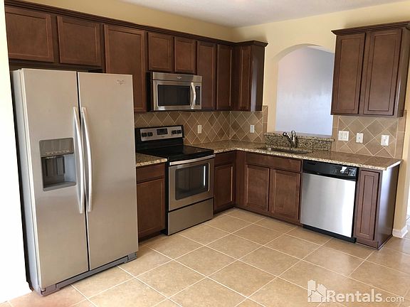 Location, location, location! Gorgeous upgraded townhome in the gated community of Lone Star. Contemporary kitchen finishes - granite/stainless/dark wood cabinets and tile backsplash with pass through to dining/living area. Bumped out from kitchen to rear allowing eating area with conservation view through sliding glass doors leading to lanai and storage. Entire first floor with 18" tile on diagonal - beautifully finished! Half bath on the first floor for family and guest convenience. Upstairs, each bedroom has its own bath and large closets - stand alone shower in master bath, tub with shower in second. Carpet in bedrooms and tile in upstairs wet areas. Townhome is on conservation and there is a community pool. Easy access to EVERYWHERE via Suncoast Pkwy. Trash included in rent.