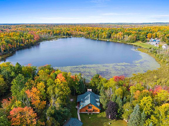 Charming log cabin on 19 acres with frontage on peaceful Gillett Lake. This home offers the rare blend of waterfront living and space to roam. The main level features a vaulted great room with stone fireplace and a large primary suite with walk-in closet and private bath. The lower level includes a built-in bar with room for a game or family room—great for entertaining. Enjoy quiet, lake days perfect for kayaking or relaxing by the water. The level yard is ideal for outdoor activities or gatherings. Whether you’re looking for a weekend getaway or a full-time home, this property offers privacy, beauty, and year-round enjoyment. There are three lots included with the sale.
