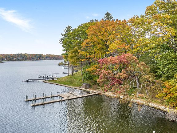 This incredible Tudor estate boasts a stunning Spring Lake frontage and offers over 5500 sq ft of finished living space, with 146 feet of breathtaking water views. The property is situated on almost an acre of land, providing the utmost privacy. The house comprises 5 bedrooms, including 3 en suites, and 5 bathrooms. Upon entry from the gated driveway, you will be greeted by stunning landscaping and a decorative fountain. The welcoming foyer leads you to the expansive gourmet kitchen, featuring custom cabinets, granite countertops, top-of-the-line Viking appliances, and a wine bar. There are 2 spacious living rooms, both with fireplaces, as well as his and hers offices or a library, and formal and dining areas. The main level also includes a 3-stall attached garage, a laundry room, and and 2 half baths. The upper level has 3 en suites, including a large primary bedroom, and 2 additional bedrooms, making it a perfect retreat. The lower level walkout offers a recreation room, wet bar, full bath, and ample storage. The composite decking and large patio provide an exceptional outdoor lake living experience. The property can be purchased with a carriage home just before the entrance for an additional $400,000.