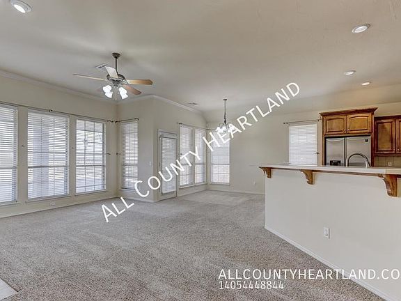 Incredible opportunity to live in the prestigious gated Traditions Neighborhood! This charming 3 bedroom, 2 bath residence offers a perfect blend of comfort, convenience, and luxury living. This home boasts a spacious layout with three bedrooms, Large Kitchen opens seamlessly to the dining and living areas, plenty of countertop space and cabinets for storage, and a convenient pantry. Step outside to enjoy the serene outdoor space with a covered patio, perfect for relaxing or entertaining guests. In-ground storm shelter located in the garage. The homeowner's association takes care of the lawncare, allowing you to enjoy a beautifully manicured yard without lifting a finger. Edmond Schools and situated just minutes away from an array of restaurants and shopping destinations. You'll have everything you need right at your fingertips. Don't miss out on this one! Schedule your tour today. Every All County Heartland Property Management residents are enrolled in the Resident Benefits Package (RBP) for an additional monthly fee which includes liability insurance, HVAC air filter delivery, on-demand pest control, and much more! More details upon application.