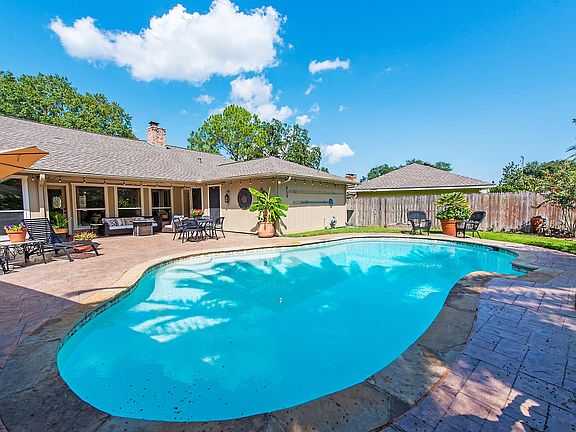 Gorgeous 4 bedroom, 2.5 bath home with a flex room or study & a sparkling pool! Professional landscaping! Formal living with open air courtyard. Upstairs study with tons of built ins for storage. Spiral staircase leads to the upstairs office. High ceilings & open/bright home with lots of natural light plus sky lights in living room! Recessed lighting, upgraded fixtures/fans/hardware. Wall of windows overlooking the pool and tropical backyard oasis! Wet bar area in living room double doors. Bookshelf in other double doors. Eat-in kitchen with breakfast nook and breakfast bar. Granite countertops, stainless steel appliances, center island & tile backsplash with upgraded design. Wood beams throughout. Granite counter tops in owner's bath with undermount sinks. Neighborhood walking trails, mature trees, parks, wildlife along the bayou! Bay area park 5 mins away- has a dog park! Restaurants, shopping centers, Baybrook mall - all within 5-10 mins. Low taxes & zoned to CCISD!
