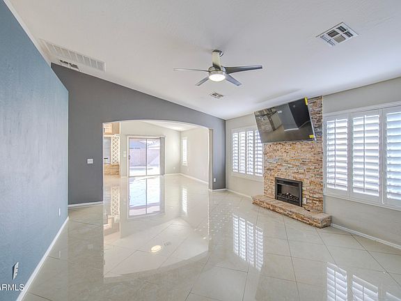 Your beautiful new home is move in ready, located on a cut de sac, and in immaculate condition. This is a split floor plan with the primary bedroom towards the back of the home next to the kitchen and the other 3 spacious bedrooms down the hallway. Gorgeous tile flooring throughout all the living and walking areas with carpet in the bedrooms. Contemporary sink fixtures in both bathrooms.. Your new kitchen has granite countertops, tile backsplash, stainless steel appliances, breakfast bar, island, vaulted ceilings, and beautiful cabinets with lots of storage space. The backyard has covered patio, sparkling swimming pool, and no maintenance landscaping. This could be your new home sweet home so come see it for yourself.