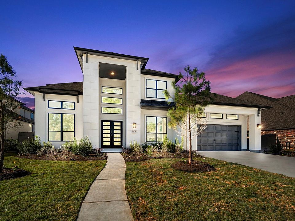 Sleek contemporary stucco exteriorOutdoor kitchenExquisite designer finishesCovered patioFormal diningStunning quartz countertopsFreestanding tub