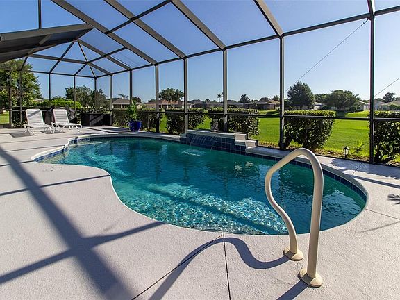 Welcome to this exceptionally well-kept Venice model in the 55+ golf community of SummerGlen. With 3 bedrooms, 2 baths, and 2,090 square feet, this home shows the benefit of careful ownership and smart upgrades. A brand-new roof (Feb 2024) tops a well-designed split floor plan where the primary suite opens through sliders to the pool and lanai. This year the owners installed high-end luxury vinyl plank (LVP) flooring throughout the kitchen, living areas and bedrooms. It’s quieter and more comfortable underfoot than traditional vinyl, has an engineered polymer core for strength and flexibility, and is completely waterproof, scratch and slip resistant. The kitchen features cherry cabinets with pullouts, granite counters with a modern edge, a gas range, stainless steel appliances, and a solar tube for natural light. A breakfast nook, breakfast counter, and formal dining room make entertaining easy. Inside you’ll also find upgraded lighting and ceiling fans and no carpet anywhere. Step through the enclosed lanai sliders to the salt-water pool with waterfall under a spacious bird-cage screen, where paver decking and wide golf-course views create a true Florida retreat. Practical upgrades include a new garage door opener, new water softener, and LVP flooring. Washer and dryer are included. Living in SummerGlen means access to an 18-hole golf course, on-site restaurant, resort-style pool and hot tub, tennis and pickleball courts, softball field, dog park, RV storage, and a vibrant clubhouse with fitness center and social activities. The low monthly HOA of $375 covers guard-gated security, Spectrum Bronze Tier 1 TV cable, 100 Mbps high-speed internet, lawn care (mowing, edging, and blowing), trash and recycling pickup, and RV and boat storage for a one-time fee. As an added bonus, residents receive a $30 monthly credit at the on-site restaurant.