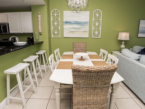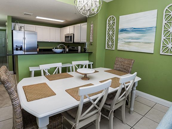 Welcome to Beachfront living at it's Best . Master Bedroom on the Gulf with views from wall to wall sliding doors .Calypso Tower 1 Unit 906 is the perfect placement in the Building and the 9th Floor has amazing views .Gulf views also from the living room ,dining room and kitchen .If that's not enough head out to the Balcony ( West Sunsets are priceless). Kitchen has new Stainless Stove and Refrigerator, ( Just delivered October29th,2024 ,newer dish washer ,Microwave . Granite counter tops ,White Cabinets .This unit has a wet bar with Granite Counters. Guest Bedroom has a King size bed .Bonus Bunk room that makes this unit sleep like a 3 Bedroom has double size bunkbeds. All Bedrooms have TV'S . Laminate Wood in the 3 bedrooms and Tile in Living Room ,Dining Room ,Kitchen and Baths for easy clean. Everything is fresh with new Comforters ,Shower Curtains some light fixtures ,pictures etc. Calypso has 2 Huge Pools with Beverage Oasis on site (Tiki Bar). Hot Tub...YES. Exercise Room---YES. Walk to Pier Park for shopping and Restaurants. Never have to get in your car if you don't want to from Calypso Beach Resort.