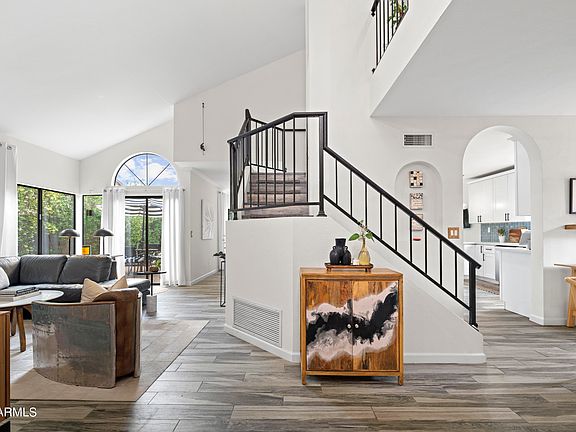Beautiful Scottsdale Home Located in the ''Magic'' 85254 Zip Code! Once you've made your way through the private courtyard, you enter the home through large double doors and into the beautiful great room with soaring ceilings. Lovely updates are found throughout this 3bdrm/3ba home including a stunning kitchen with professional stainless steel appliance package, quartz countertops, custom white cabinetry completed with crown molding, and subway tile backsplash. Just off the cozy breakfast nook you'll find the nicely shaded, low maintenance backyard. The light and bright primary features vaulted ceilings and a beautiful ensuite bath with separate shower and soaking tub. Amazing location that is close to parks, shops and restaurants at Kierland, the up and coming outdoor Paradise Valley Mall and more! *Furnishings, excluding artwork, are negotiable by separate Bill of Sale.