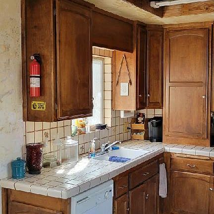 Incredible fixer with awesome architecture. This home is ideal for the buyer that wants easy access, adjacent to greenbelt, vaulted ceilings, plenty of parking with architectural interest. A corner lot that backs to HOA open space, this property's lay out is wonderful. As you approach the house you have a paved driveway to a carport (under deck) with stairs up to the front door that enter on a split-level landing. Ascend the stairs to see the beautiful, vaulted tongue and groove knotty pine ceilings with exposed beams, charming rock fireplace in corner of the living room between two story windows that let in all sorts of natural light. Sliders out to the spacious deck, dining area off the kitchen, hallway leads to one bedroom and one 3/4 bath....lots of wood accents and details. Descend the stairs to find a great den with wet bar, another fireplace in brick, the utility/laundry room another bedroom, under stair storage and full bath.