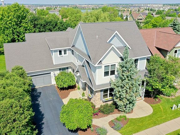 Absolutely Sublime Cobblestone Lake one off Custom Designed and Built Home. This Farmhouse inspired Masterpiece provides elegant and efficient living for you and yours with abundant entertainment spaces, tech, and built-ins it includes: Two stair cases up, Custom lighting though out, A Gourmet Kitchen with walls of Purpose built Alder Cabinetry, gorgeous Italian Marble, State of the Art Professional Viking Induction Range, a rare trash compactor, an oversized Farm House sink and an huge island with a double slab of Marble. The main level affords a gorgeous centerpiece fireplace with a wall of built-ins that walks out to the separate front porch with ample room and seating for entertaining. Here you will also find Brazilian cherry flooring, abundant natural light shining through the many oversized Andersen windows, a wonderful office/den and a walkout to the beautifully landscaped backyard oasis. The Second level is open, has a terrific senior en-suite, with double doors, a walk-in shower and jetted tub, a laundry room that is double insulated with a new smart washer and dryer set, as well as three additional sizable junior bedrooms and another full bath. The senior bedroom has an enormous closet with well-designed built-ins that walks through to a hidden door with a back entrance to the enormous Bonus room that overlooks the landscaping and lake during the winter, it exits downstairs from the second staircase. The lower level has a third gathering room with another beautiful fireplace, a third built -in surround sound system, a gorgeous walk behind wet bar, a game room and a full bathroom. You will be a very short walk to the lake, neighborhood pool and miles of paths. Welcome home!