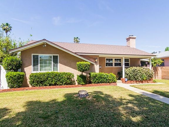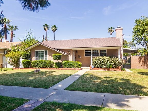 Great value in this well cared for Mid-century, Southern California classic, single-story, 3 bed, 2 bath, 1,239 sq ft home, well-situated in Granada Hills neighborhood. Well landscaped both front and back. Inside you will find brand new paint and carpet! Entry leads to open floor plan with living room anchored by fireplace with dramatic brick hearth and built in hutch, dedicated dining area, and breakfast bar leading to the kitchen area. Kitchen boasts built-in appliances, including double oven, 5-burner gas range and dishwasher as well as laundry area. The living room flows into the step down into family room, (beautifully done but without permit) featuring decorative beamed ceiling, extensive windows with plantation shutters, built-in shelving and storage, and access to the back yard and side-yard area with covered patio. The Main house has 1239 sq ft plus the family room which is approx 320 sqft (16 x 20) - Total living space is approximately 1560. Quality dual pane windows and sliding glass door. Detached 2-car garage has 120 sq ft addition done with permit as tool shed, could be used for storage, or turned into a private office or workshop or even an ADU. Alley provides access to both garage and secure, gated entrance to carport in backyard. Convenient location, nearby supermarkets, local eateries, and only minutes from the 405 and 118 freeways!