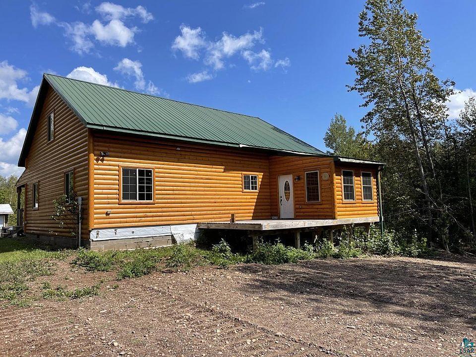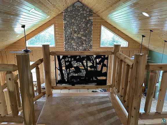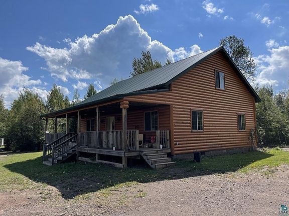 Beautiful setting for this newer log sided home that is not quite finished yet...Fully functional but missing some trim around windows and floors, some flooring in the bedrooms along with the center beam, which was to be decorative only, ceiling in in the covered porch. Floor to ceiling stone fireplace is stunning and the kitchen is a great layout with nice working peninsula and loads of counter space and storage. Main floor bedrooms have huge walk in closets. Kitchen is wired for over cabinet and under cabinet lights. RV parking pad is available for visitors. Metal roof and nice decks in front or back. 12x24 office workshop. New metal roof with new windows and French doors. Borders Superior National Forest. Lots of trails and easy access to state snowmobile trail.