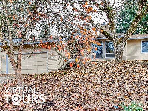 Charming 3 bd / 2 ba home located in a quiet Beaverton neighborhood! Highlights include the open floor plan, vaulted ceilings, exposed beams, and spacious deck! A carpeted living room sits to the right of the wood floored foyer with a tiled wood burning fireplace and large windows overlooking the front yard. Flow into the chandelier lit dining room, then the kitchen, equipped with wood cabinets, a new garbage disposal, bar seating, and a breakfast area. This space connects to the main living room, featuring a brick gas fireplace and sliding glass doors to the backyard, also accessible from the hallway and the primary suite. The suite also offers two closets, with mirrored doors, and an updated bath, with a dual sink vanity and glass door shower! Two remaining bedrooms share the hallway bath, containing a wood vanity and shower/tub. A laundry room completes the interior. Entertain on the wood deck outside, overlooking the mature trees and lush landscaping in the fenced-in yard! Forced Air heating. Newer energy efficient water heater and furnace. Double paned windows. Two car garage. Located near parks, trails, Nike World Headquarters, shopping, and dining!