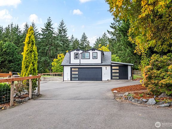 Country living within Gig Harbor—just minutes from Downtown Gig Harbor, Gig Harbor North (Costco, Target, Home Depot) and Hwy 16! This beautifully remodeled home shines with a brand-new kitchen, bathrooms, flooring, interior & exterior paint, new 4-bedroom septic, and fresh asphalt driveway. The main level offers a bedroom and 3/4 bath, while upstairs features a bedroom, office, and an additional 3/4 bath. Enjoy a rooftop patio, back deck with hot tub, and a 3-car detached garage (or 2-car + finished gym) with unfinished space above. Level, fully fenced 2.5 acres include outbuildings and carports—perfect blend of comfort, style, character and space!