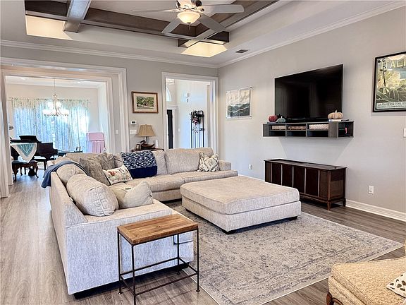 Welcome to this charming island home! This beautiful four-bedroom, three-bath home is immaculate and move-in ready. As you approach, you"ll notice the elegant double front doors with inlaid decorative glass that give a warm, coastal welcome. Step inside and you are greeted by tall ceilings with wood beams and an open-concept layout that seamlessly connects the living area, dining area, and breakfast nook. The chef's kitchen features granite countertops, beautifully stained custom cabinets, and plenty of space to cook and entertain. To the left of the home, you will find a guest bedroom at the front along with a full guest bath. The spacious primary suite is tucked away in the back corner for privacy and features a luxurious bath with a soaking tub, separate shower, dual sinks, a private water closet, and a large walk-in closet complete with built-in shelves and drawers. On the opposite side of the home, you will find a generous laundry room and a convenient mud area. Two additional bedrooms share a Jack-and Jill bathroom, ideal for family or guests. Outside, the backyard offers plenty of room for a future pool and current features a screened in covered patio, perfect for relaxing. The east-facing orientation means you will enjoy bright morning sun and cool evening shade, ideal for island living.