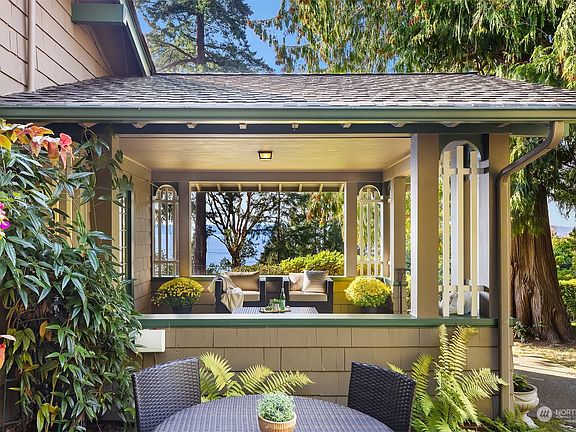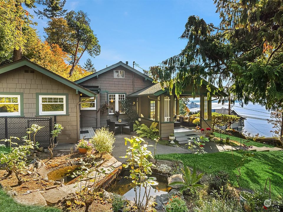 Extraordinary sound & mountain views from this charming craftsman perched above Maplewild Ave in the desirable 3 Tree Point neighborhood. Escape the hustle & bustle of life & step into this tranquil setting surrounded by lush grounds and a private 15,000 sq ft lot. Sip morning coffee on the inviting open porch & enjoy evening sunsets on the patio by the pond. This darling home offers 2 bedrooms & 2 gorgeous baths, each with heated flooring and extensive tile work. Timeless wainscotting, sun-filled windows, & beautiful French doors make this enchanting home so memorable. Two car garage and a basement for extra storage space. Close to Olde Burien's shopping & dining, nearby parks & beach. Easy commute to SeaTac & downtown Seattle & freeways.