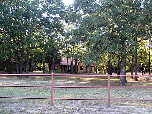 QUIET & SECLUDED get-a-way nestled among the towering oaks & only 35 minutes from Dallas.Updated kitchen, granite c-tops,spacious living area with wood burning stove, split bedrooms. Master suite with w-i-c, dble sinks, jetted tub & separate shower. Great outdoor living. Manicured property with lighting & water in various locations. Electric gate, pipe fencing, 30x30 shop with overhead door, electric, water, RV parking & even a potting shed.