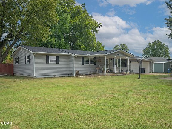 Less then a mile off the interstate and just outside Neosho city limits! This 1,568 sq ft home sits on 2.4+/- acres and offers 3 bedrooms, 2 full baths, and two spacious living areas. PLUS there is a 2-car attached garage with extra ''workshop'' area in the back. The kitchen features classic twin oak cabinets with lots of cabinet space. The living room has a large overside window that brings in lots of natural light and also has original hardwood floors. Major updates include a new roof and gutters (2021), new HVAC (2022), and a brand-new water heater (2024), giving peace of mind for years to come. Outside, you'll find a fenced backyard with a small storage shed, plus a 16x20 barn with dual 9x20 lean-tos and a metal roof replaced just 2 years ago—perfect for storage, hobbies, or livestock. There use to be a pond on the far back side of the property that has dried up and needs to be refilled! If you're looking to sit outside city limits, but still need easy access to the highway and town, this is perfect for you!