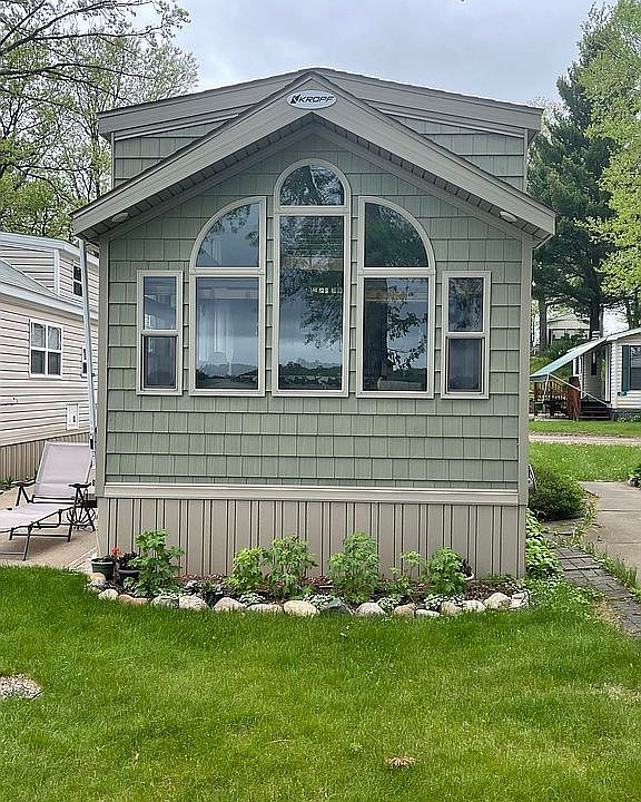 Almost new Seasonal Kropf park model in Wilderness Park 20 feet from the lake with shared dock in front. Located on Little Pine Lake-Whitefish Chain of lakes. Oversized garage is included with this property.
