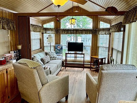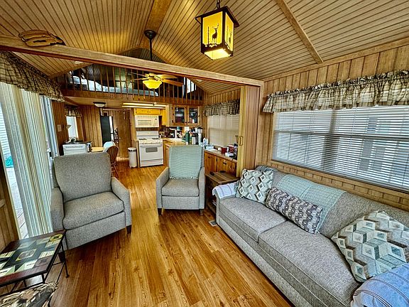 Looking for the up north feel at the lake? This 2006 built Breckenridge Park Model is it. Nicely finished with wood accented walls/ceilings, lots of windows, open floor plan, deep double loft, central air, large patio, main floor room divider for privacy, new furniture and upgrades including 2 queen Saatava mattresses, red alder cabinet doors, counter tops, extra cabinets, plank flooring, sofa sleeper with upgraded mattress, wall shelves, full size stainless steel refrigerator, newer roof , 12x30 garage with electricity and materials to build a garage loft, maintenance free shed ready to go up, designated desired outside boat slip for easy access to the Whitefish Chain. Enjoy all the amenities Wilderness Park has to offer including heated outdoor pool, basketball, tennis and volleyball courts, playground, shower house w/laundry facilities, fish cleaning house, car/boat wash, private boat landing, storm shelter and much more