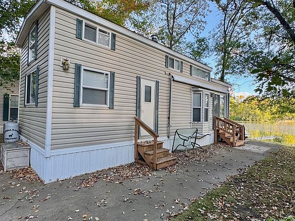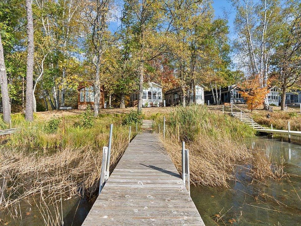 Tucked away at the end of a quiet road in one of the park’s most desirable locations, this furnished park model is sitting right at the waters edge on Little Pine Lake with access to the entire Whitefish Chain. This unit has windows galore and lake views at every direction. This LAKEFRONT unit has spacious main floor bedroom, nice open floor plan, vaulted ceilings, 2 sided loft with 3 twin beds, full-size appliances, wood floors. and central air. Step outside to your own half side of dock just steps from the patio and a cozy patio for relaxing evenings. Wilderness Park offers many amenities including a heated outdoor pool, private boat launch, fish cleaning house, boat/car wash, laundry and shower facilities, storm shelter/rec center, new tennis/pickle ball courts, volleyball , basketball court, horseshoe pits, playground, sandy beach, wood shop, picnic area and walking trails that lead all the way to town. 2004 Northwood Sun Angler pontoon also included in sale. A rare opportunity to own lakefront in Wilderness Park, don’t miss it.