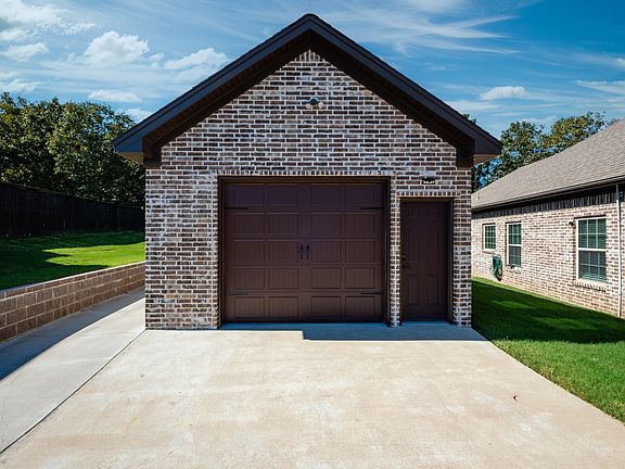 This stunning home offers the perfect blend of comfort, privacy, and style. Nestled against a wooded backdrop, it features an open floor plan with a cozy living area and beautiful fireplace, ideal for relaxing or entertaining. Arched doorways lead to a separate dining room, while the large kitchen impresses with slab granite countertops, a spacious island, gas range, stone backsplash, and walk-in pantry. The primary suite is a true retreat, complete with hardwood flooring, dual vanities, a corner jetted tub, oversized tiled shower, and two large walk-in closets. The additional bedrooms are generously sized and filled with natural light. New AC unit 2023 with 10 year warranty Enjoy the convenience of a large laundry room with a built-in bench/mudroom area, and unwind outdoors on the covered patio featuring a wood-burning fireplace. The fenced backyard offers privacy and views of the wooded area beyond. A side-load garage provides extra storage, and the detached brick 3rd-car garage or workshop adds even more flexibility. This home checks every box—modern construction, timeless design, and a serene setting close to everything you need!