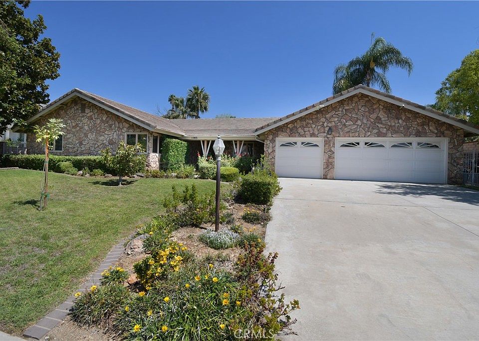 Sprawling single story boasting over 3100 square feet in desirable Redlands neighborhood. 14,000 square foot lot. French doors open onto the stunning tranquil backyard with a covered patio, jacuzzi and an abundance of fruit trees including 3 different kinds of apple trees, 2 avocado trees, peach, fig, pink grapefruit, tangerine, navel and Valencia orange trees, fuyu persimmon, pear and plum! 3-car garage. Large family room with picture window and view of the fruit tree covered hillside. Spacious formal dining room and adjacent dinette area perfect for family gatherings and entertaining. Chef’s kitchen with large island equipped with a deep sink and garbage disposal. Separate laundry room with washer and dryer, desk space, room for an extra refrigerator and cabinets galore for extra storage. 2 wood burning fireplaces for those cozy winter nights. Generac generator. 3 separate thermostats and ceiling fans throughout to save on energy. Out front you will find massive amounts of red roses paving the way to the covered front porch. Come see this home today!