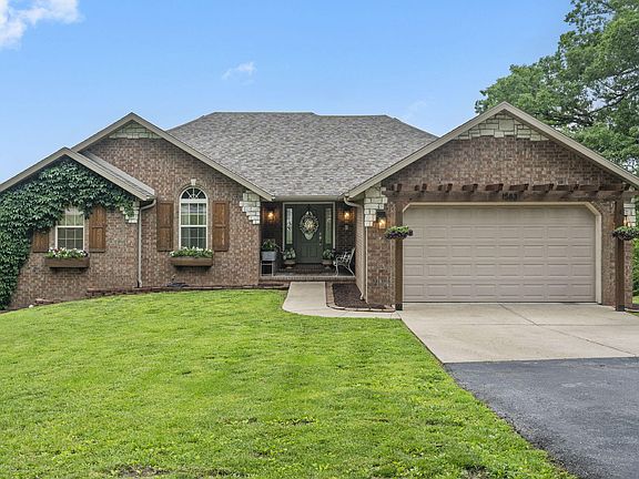 Welcome to your dream home at 1583 State Hwy JJ, Sparta, MO--a breathtaking 5-bedroom, 3-bathroom walkout basement retreat with 3,881 finished sq ft, nestled on a gorgeous 3-acre lot within the Ozark School District! Our sellers have poured their hearts into transforming this home, blending cozy country living with modern elegance. Outside, you'll fall in love with the fresh updates: new siding, roof, gutters, soffit, fascia, and a smooth blacktop driveway. A charming cedar pergola over the front garage door, paired with cedar shutters and flower boxes, welcomes you home with style. Picture yourself unwinding on the spacious new deck under its large covering, soaking in the serene views. Inside, the warmth of engineered hardwood floors flows through the upstairs, hallway, and stairs, while the kitchen and dining area dazzle with herringbone brick flooring. The kitchen is a true gem, crafted with custom quarter-sawn oak cabinetry, gleaming quartz counters, a farmhouse apron sink, and stainless steel appliances--perfect for family gatherings or quiet evenings. The butler's pantry and mudroom, with their custom cabinetry, butcher block counters, and handy coat racks, make everyday life a breeze. Downstairs, a large family room with a convenient kitchenette offers the perfect space for entertaining or cozy movie nights. Out back, a fenced portion of the acreage includes a goat barn, ready for your hobby farm dreams. With a dedicated office for remote work and plenty of space to make memories, this lovingly updated home is waiting for you to call it yours!