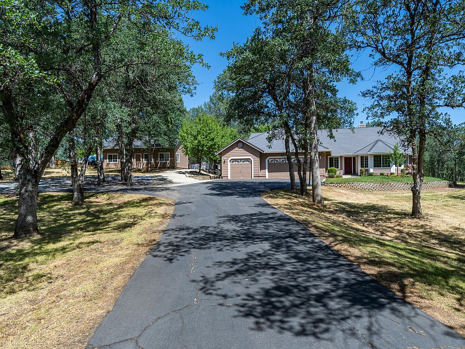 CAR/TOY LOVERS DREAM! Main home PLUS an 864sf DETACHED UNIT W/ 1/2 bath. Sweeping drive leads to this immaculate ranch style home on almost 5 acres in the Grant District. Interior features granite, double ovens and beautiful hardwood floors. Property boasts 6 garage spaces (3 oversized), and a huge RV/carport. Det. unit great for in-laws, guests, man-cave, shop etc.